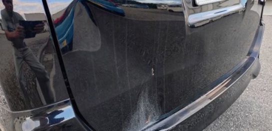 センサー部分を押し込んでいますが、塗膜に割れは無いです。普通に周囲すれば、バンパーカバー交換とソナーセンサー再登録で15万は覚…